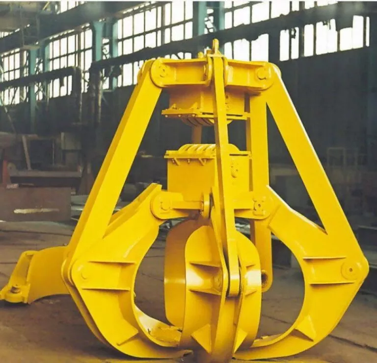 Особенность конструкции канатных грейферов заключается в том, что размыкание/смыкание челюстей осуществляется благодаря канатам. В действие их приводит крановый механизм.